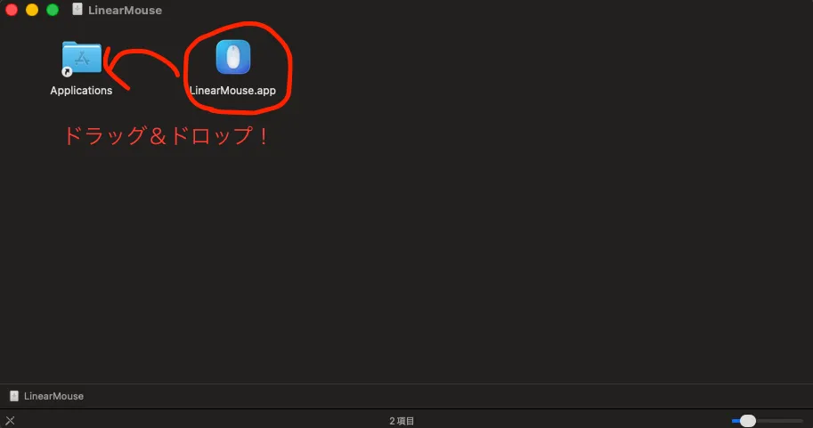 dmgの場合はダウンロードしたファイルを開いて、アプリケーションフォルダにドラッグ&ドロップでインストールしてください。