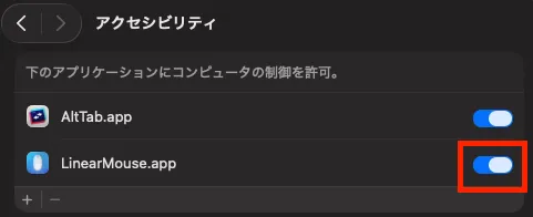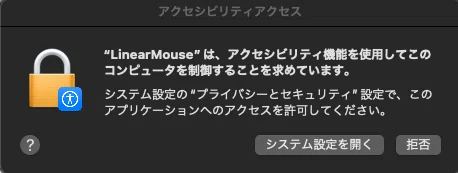初回起動時はアクセシビリティの許可を求められるので、許可してください。